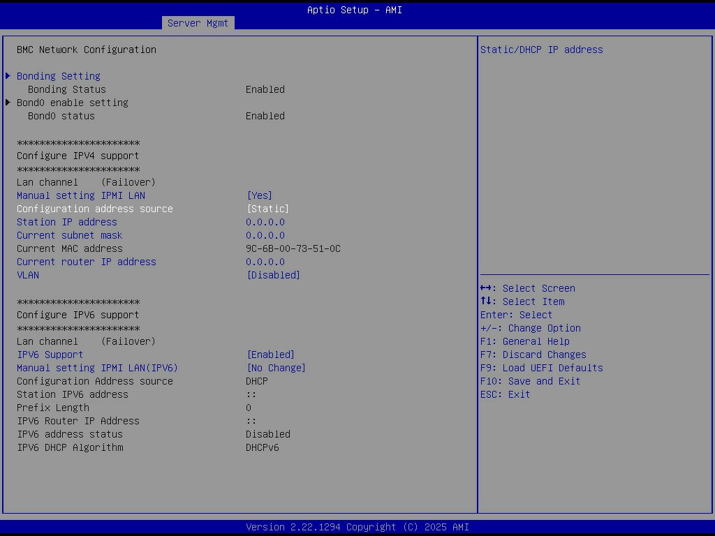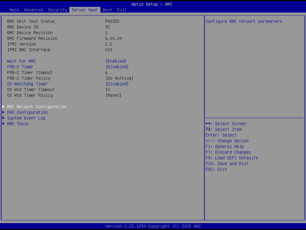 Navigate to the Server Mgmt tab. From there, select BMC Network Configuration.